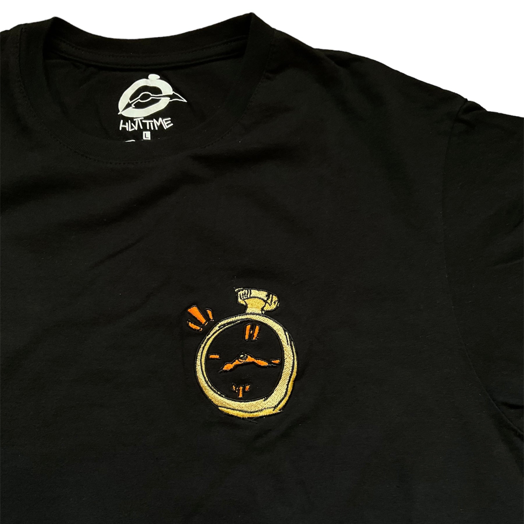 🔻 Embroidered gold clock over the heart